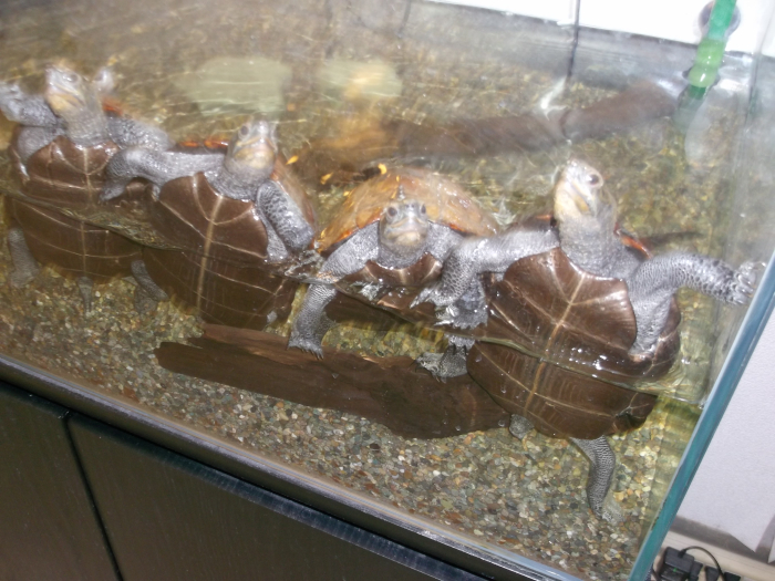 運動不足にならないように、仲間と一緒に楽しく泳いでいます。